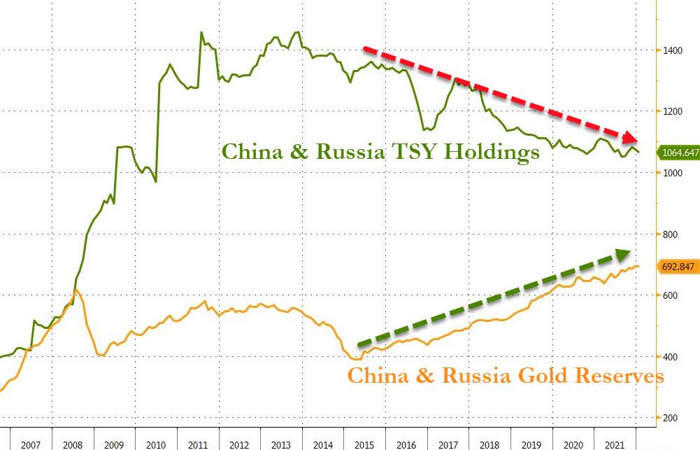 De hecho, tienen Sr. Rogoff, como hemos detallado en los últimos años, la desdolarización del mundo se ha acelerado y las acciones recientes tomadas por los EE. UU. y sus aliados para restringir el acceso de Rusia al sistema financiero global dominado por el dólar. – la llamada ‘armamentización del dólar estadounidense’ – podría estimular aún más los movimientos para desarrollar una alternativa al dólar.