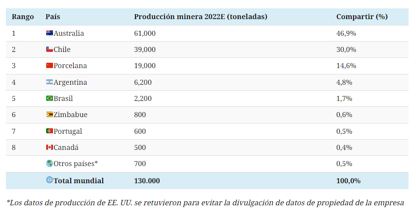 La infografía utiliza datos del Servicio Geológico de los Estados Unidos para explorar los países productores de litio más grandes del mundo.