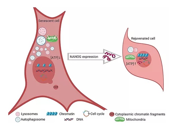 En particular, NANOG aumentó la cantidad de células madre musculares en el músculo de ratones que envejecen prematuramente. Esto demostró la viabilidad de revertir el envejecimiento celular en el cuerpo sin la necesidad de reprogramar las células a un estado pluripotente embrionario, un proceso que se usa a menudo en la terapia con células madre pero que conlleva el riesgo de tumorigénesis.