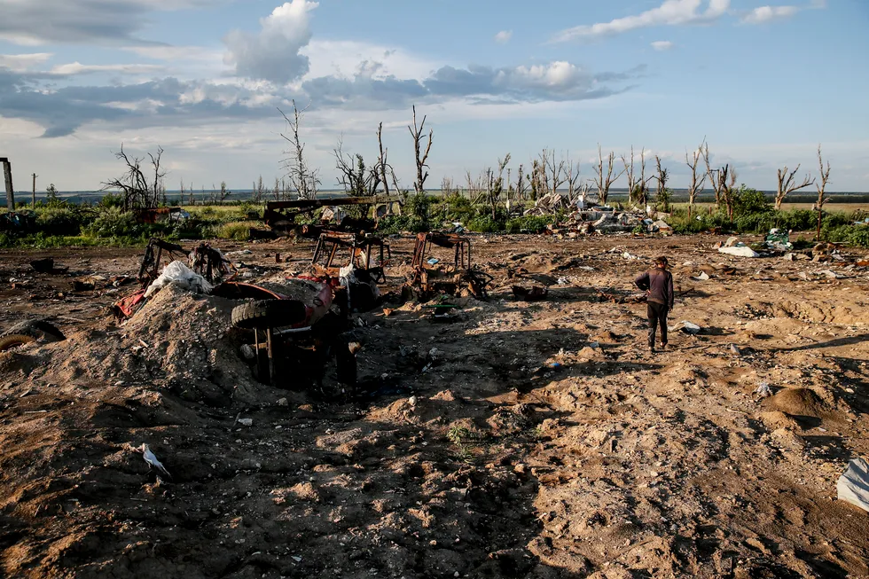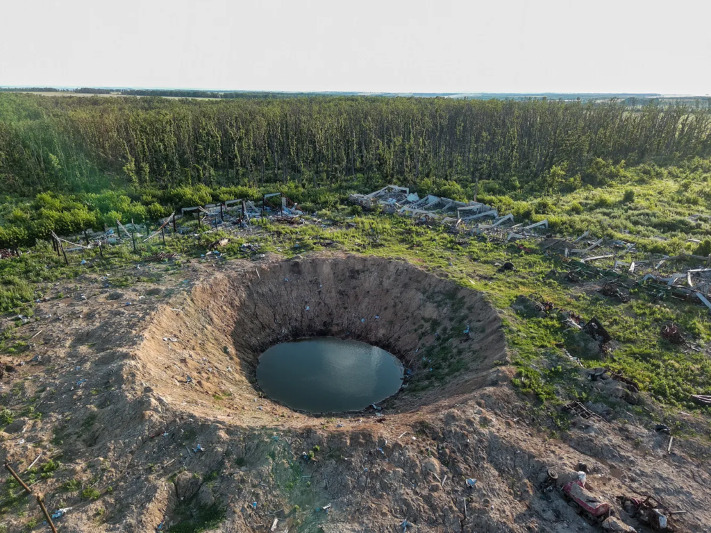 La imagen del dron muestra un gran cráter de bombardeo en el pueblo de Dolgenkoye, región de Kharkiv, ubicado entre Izyum y Slavyansk. Ahora Dolgenka está bajo el control del ejército ucraniano. Después del comienzo de una invasión a gran escala, los 540 habitantes abandonaron el pueblo. Oleg Petrasyuk / EPA / Scanpix / LETANikolai camina por la granja en ruinas en el pueblo de Dolgenkoe Oleg Petrasyuk / EPA / Scanpix / LETANikolay en la casa destruida de su hermana en Dolgenkiy. Vino aquí a recoger los restos del colmenar. Su propia casa en el pueblo cercano de Krasnopolye también fue destruida durante los combates, después de lo cual Nikolai y su familia se mudaron al pueblo de Krestishche, donde ahora cría abejas. A juzgar por las inscripciones en la pared, el ejército ruso podría haber vivido en esta casa. Oleg Petrasyuk / EPA / Scanpix / LETALa familia de Nikolai viaja a lo largo de Dolgenki. Oleg Petrasyuk / EPA / Scanpix / LETA