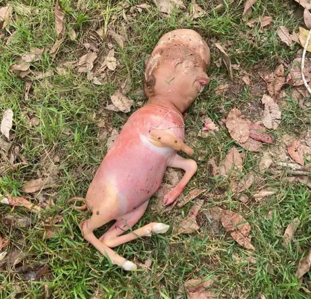 La cría de aspecto extraño nació en una granja en Tailandia, pero no sobrevivió por mucho tiempo. Sin embargo, sobrevivió lo suficiente como para avivar los rumores de una curiosa cita entre el hombre y la bestia.