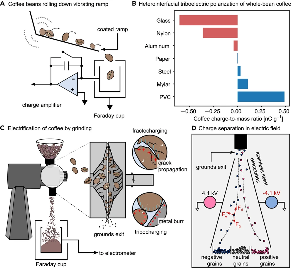 El estudio, dirigido por el autor principal Christopher Hendon, químico de materiales computacionales de la Universidad de Oregón , explora el fenómeno de la generación de electricidad estática durante la molienda del café.