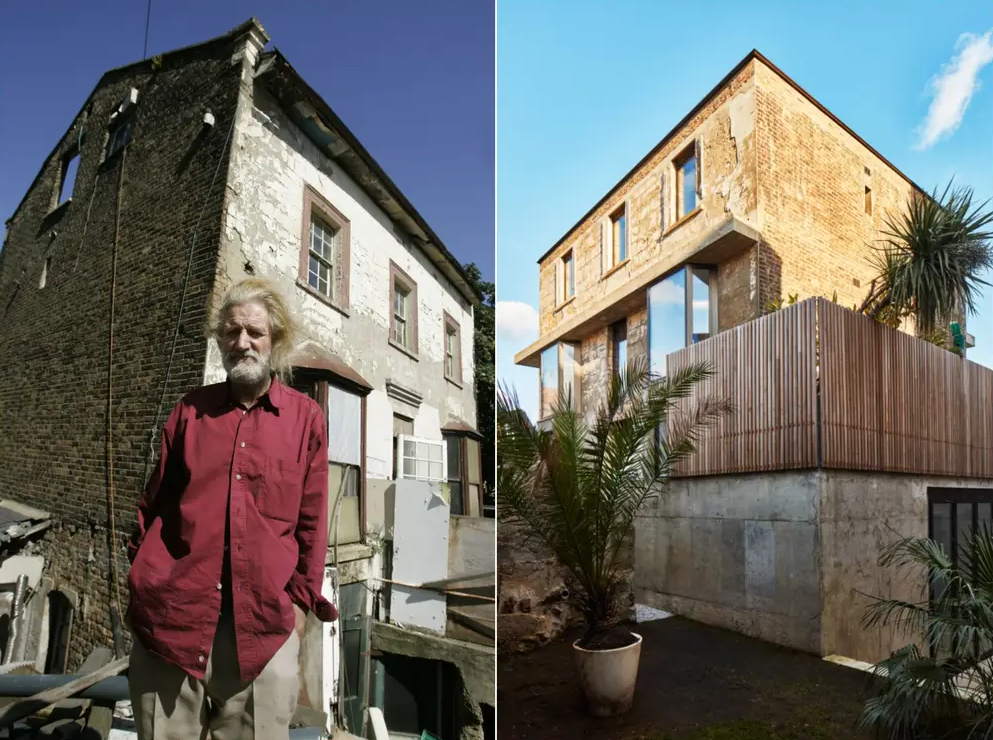 La artista Sue Webster compró la propiedad en 2012 y pasó cinco años transformándola en su hogar y estudio de arte. La casa remodelada, finalizada en el 2020 e intervenida por el grupo de arquitectos Adjaye Associates, rinde homenaje a su historia con habitaciones subterráneas y múltiples entradas.