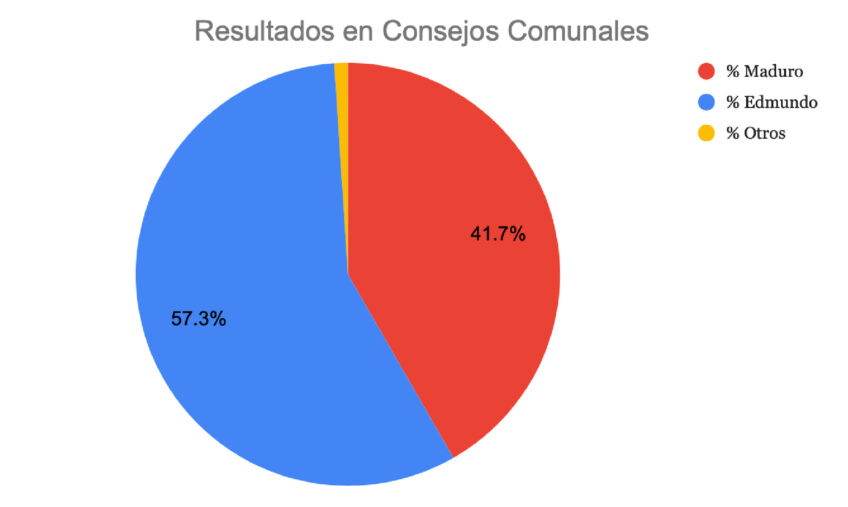 Con respecto a los Consejos y Casas Comunales analizados, Edmundo González obtuvo 57% de los votos contra 42% de Nicolás Maduro