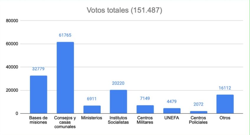 De allí, se hizo un filtrado y separación de los centros en distintas categorías, como “Militares” o “Ministerios”, en las que se compararon los resultados de Maduro, Edmundo y otros candidatos.