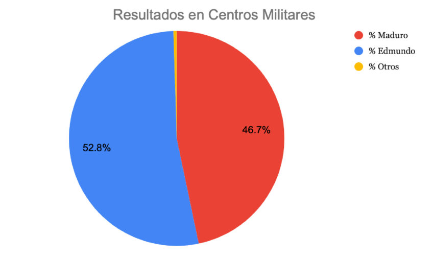 Lamentablemente, los datos recopilados hasta ahora por el Comando ConVzla y Macedoniadelnorte.com, impiden obtener una muestra representativa del voto en centros electorales, ubicados en guarniciones militares y sus inmediaciones. Esto es comprensible, considerando la cruel represión que se vive en el estamento militar, que hoy acumula casi 200 oficiales de la Fuerza Armada injustamente detenidos. Tenemos solo los resultados de 16 mesas en centros militares y otras dependencias de la Fuerza Armada, en los que Edmundo González obtuvo 52,8% de los votos, contra 46,7% de Nicolás Maduro. Respecto a las mesas ubicadas en las sedes de la UNEFA, que fueron analizadas, Edmundo obtuvo 64,4% versus 34,76% de Maduro.