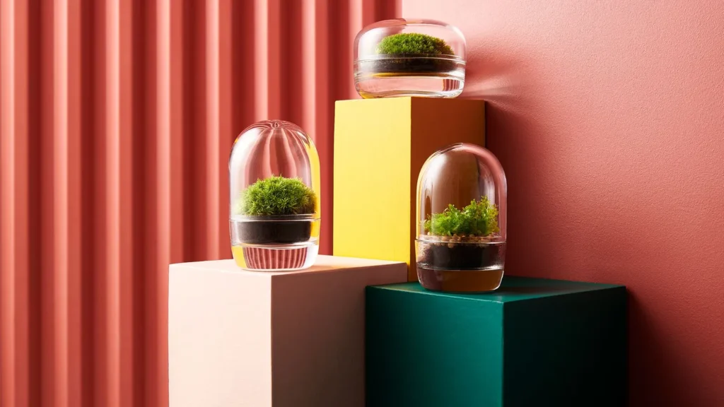 Una subtendencia del fenómeno de las plantas de interior son los terrarios, que atraen por ser de bajo mantenimiento, llamativos y estéticamente agradables. Según Sibley, «A veces, la sobrepoblación de plantas de interior hace que la gente sienta pánico acerca de cómo cuidarlas a todas. Ahí es donde entra en juego un terrario, la fusión perfecta de planta de interior y adorno. Los terrarios requieren poco cuidado y se pueden dejar durante meses en un tiempo sin necesidad de intervenir. Esto atrae a aquellos que viajan mucho y necesitan amigos y familiares para regar sus plantas». Ahora hay incluso una tendencia por los mossariums, terrarios que contienen musgo, dice ella. Moss, por cierto, tiene mucha demanda. «La gente parece estar gravitando hacia una tendencia de musgo completamente verde, que le da una sensación realmente fresca a un espacio».