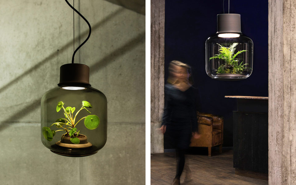 Una tendencia reciente de plantas de interior ha visto la ampliación de opciones para iluminar plantas de interior, lo que no solo es práctico, sino que puede generar efectos atmosféricos agradables. Las plantas necesitan luz natural para florecer, pero en algunos espacios, como los rincones más oscuros, escasea. Una gran tendencia ahora son las bombillas de cultivo, que compensan la luz natural del día y activan la fotosíntesis. Están disponibles en tiendas de iluminación y minoristas en línea, y se pueden usar en accesorios de iluminación normales, lo que permite colocar plantas en cualquier lugar. Los terrarios también pueden equiparse con luces de cultivo. «Los terrarios son atractivos para conjurar mundos en miniatura a los que las personas pueden escapar mentalmente, e iluminarlos mejora su calidad mágica», dice Le-Britton. «Otra tendencia reciente es un híbrido lámpara-terrario. Se trata de una lámpara con una base de vidrio bulbosa que también funciona como terrario y está iluminada por la bombilla de la lámpara. Una publicación reciente sobre esta idea se volvió viral en Instagram, y la idea ha captado en todo el mundo».