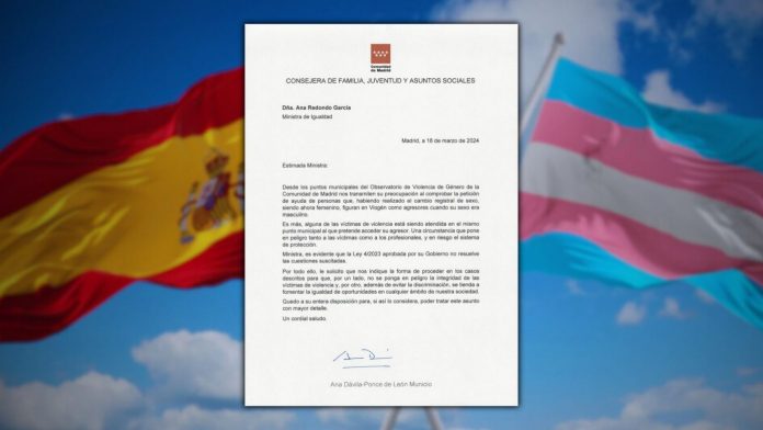 En su carta, publicada el 18 de marzo, la consejera Dávila-Ponce de León señaló que tenía conocimiento de seis casos en la Comunidad de Madrid en los que hombres acusados de violencia de género habían hecho un cambio registral de sexo, un proceso que se agilizó y se facilitó considerablemente tras la promulgación de la “Ley Trans” en España en 2023.