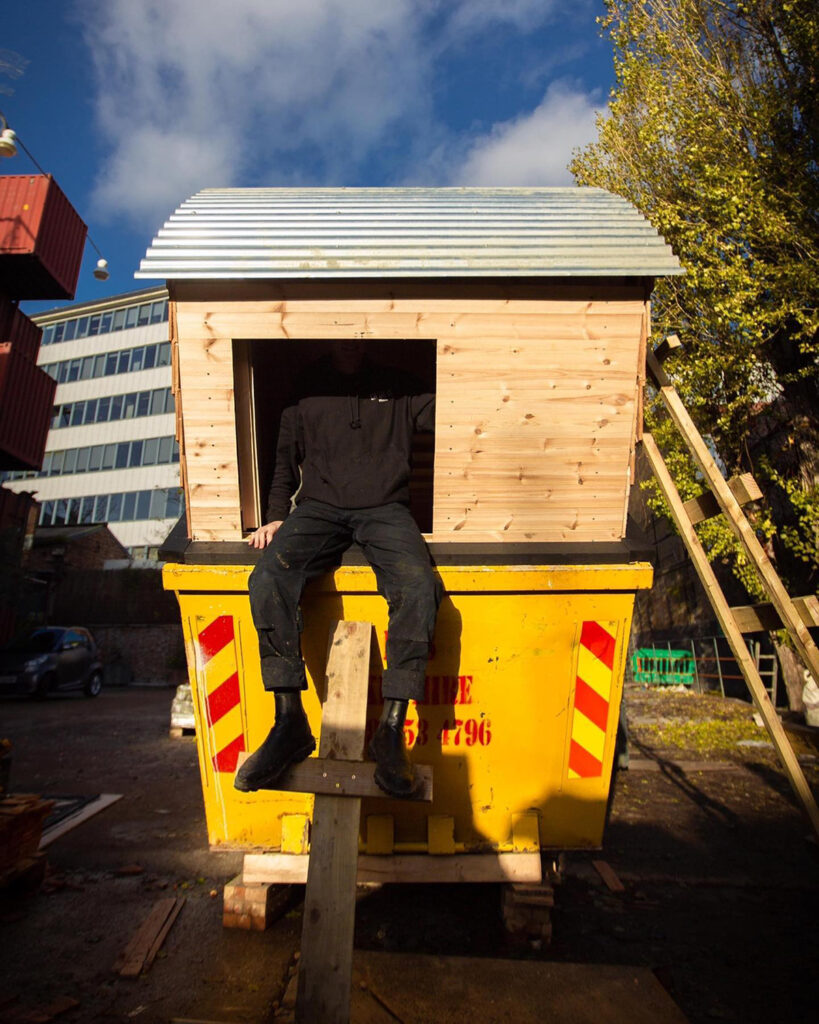Harrison Marshall, su nombre real, en realidad vive en una «casa salteadora» que construyó con sus propias manos. El artista y emprendedor arquitectónico construyó una pequeña casa dentro de un contenedor de basura y está equipada con todo lo necesario para vivir cómodamente en un espacio reducido.