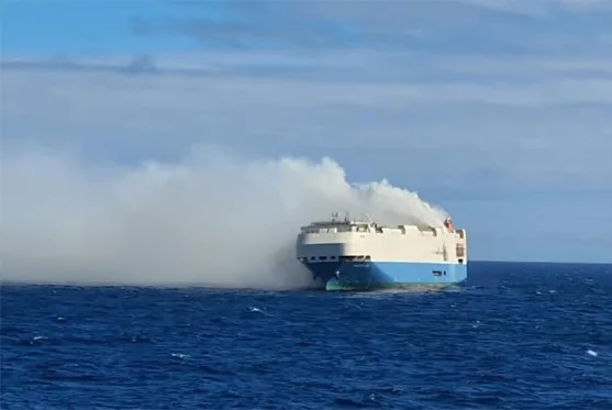 Las baterías de iones de litio de los coches eléctricos a bordo se han incendiado y se requiere equipo especializado para extinguir las llamas, dijo el capitán Joao Mendes Cabecas, del puerto de Hortas.