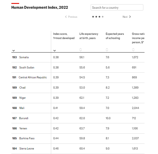 Las últimas cifras, publicadas el 13 de marzo, muestran que el idh global está aumentando nuevamente, pero el progreso ha sido lento y desigual. Nuestra tabla a continuación muestra cómo se comparan los 194 países rastreados por la onu .