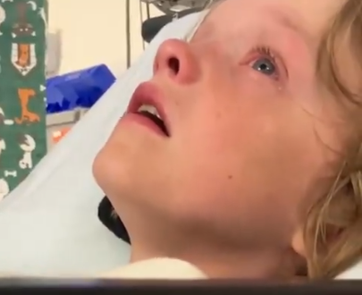 El niño fue grabado mientras despertaba y fue visto llorando mientras miraba al techo de su cama de hospital. Su padre falleció de cáncer hace tres años.