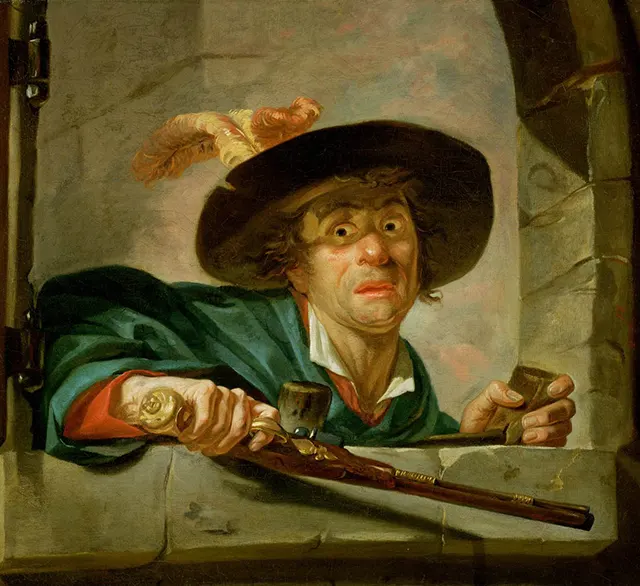 Ducreux también produjo una serie de autorretratos memorables en las décadas de 1780 y 1790, incluido uno de 1783 que lo captura en pleno bostezo, y otro, Portrait de l’artiste sous les traces d’un moqueur (c. 1793, Louvre), en el que se lo ve riendo de buena gana mientras señala directamente al espectador.