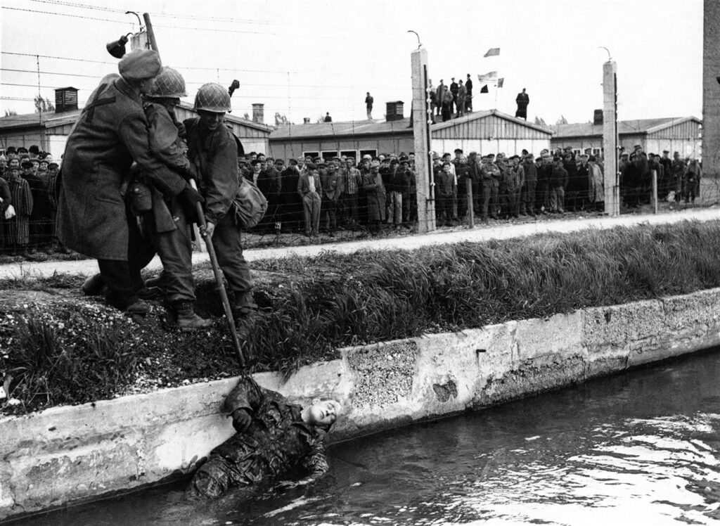 El 29 de abril de 1945 Dachau fue liberado por las tropas estadounidenses, y los reclusos supervivientes mataron a muchos guardas que después fueron lanzados a los fosos que rodeaban el campo.