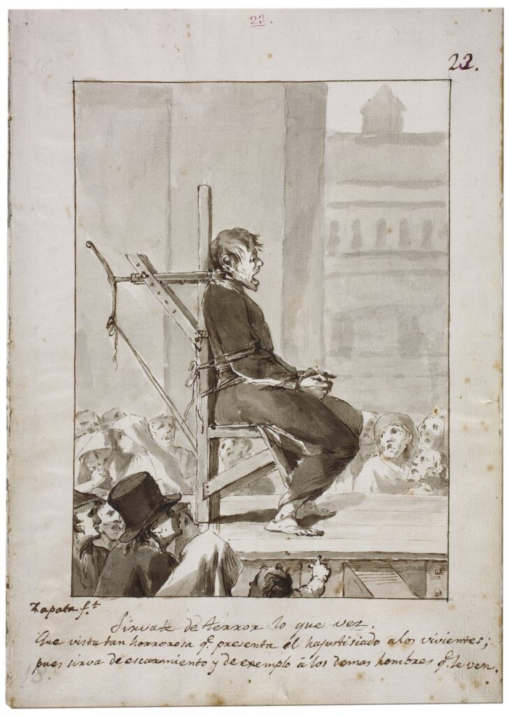 El garrote vil, un dispositivo que estrangulaba o rompía el cuello del condenado mediante un tornillo o palanca, ya era conocido en España, pero su adopción oficial marcó un hito. La horca, usada durante siglos, era notoriamente lenta y propensa a fallos, prolongando el sufrimiento del reo y generando malestar entre los espectadores de las ejecuciones públicas, un espectáculo habitual en plazas y mercados. El garrote, en cambio, prometía rapidez y precisión, lo que las autoridades presentaron como un gesto de «modernidad».
