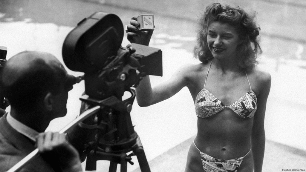Verano en París. Europa aún se sacudía el polvo de la guerra y las mujeres comenzaban a reconquistar las calles con paso firme cuando la bailarina Micheline Bernardini cruzó una pasarela improvisada junto a la pileta Molitor sin titubear. Estaba vestida con 30 centímetros de tela blanca con estampado de diarios, sostenidos por finos breteles en los hombros y la cadera. Sonreía orgullosa mientras estaba rodeada de hombres con sombreros de ala ancha y cámaras colgando del cuello que no dejaban de disparar sobre ella, sorprendidos por lo que veían. Era 5 de julio de 1946 y estaban presenciando una revolución.