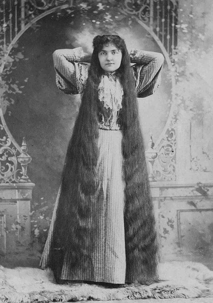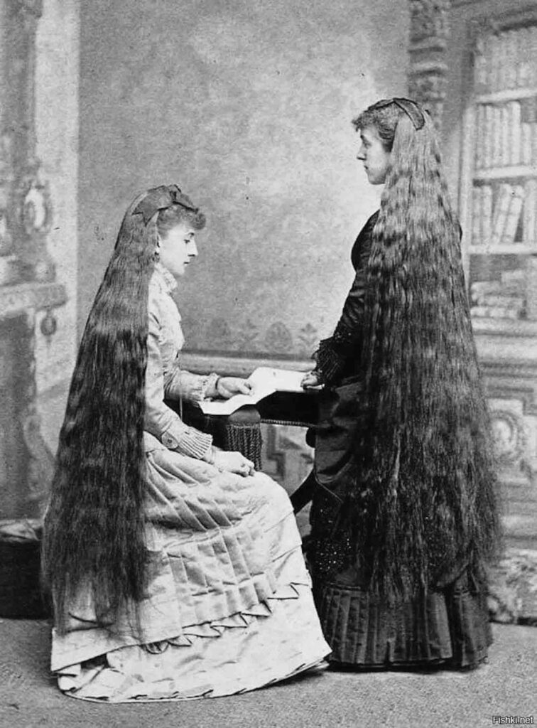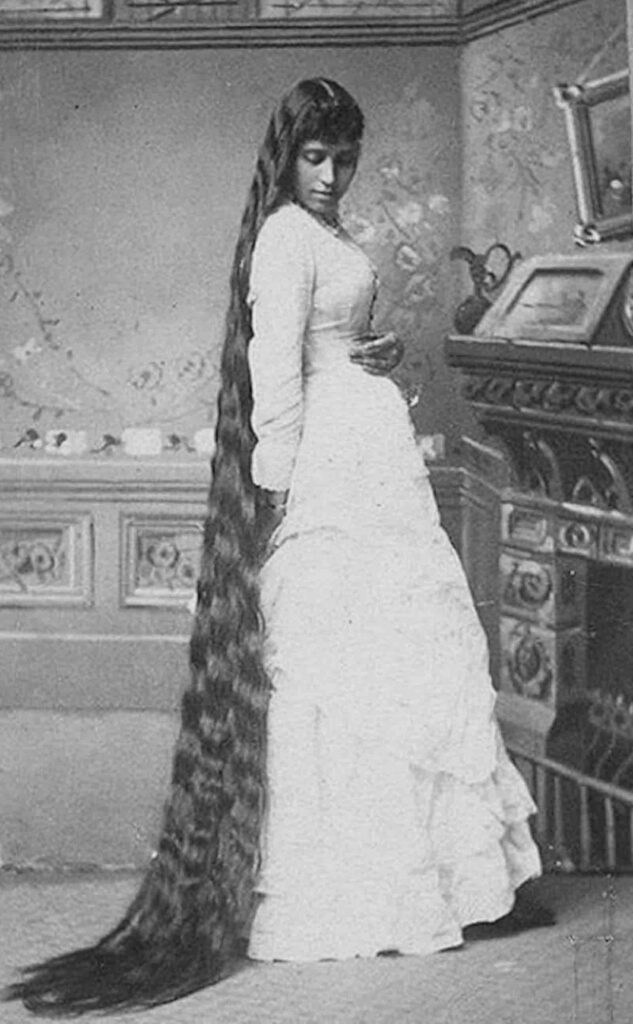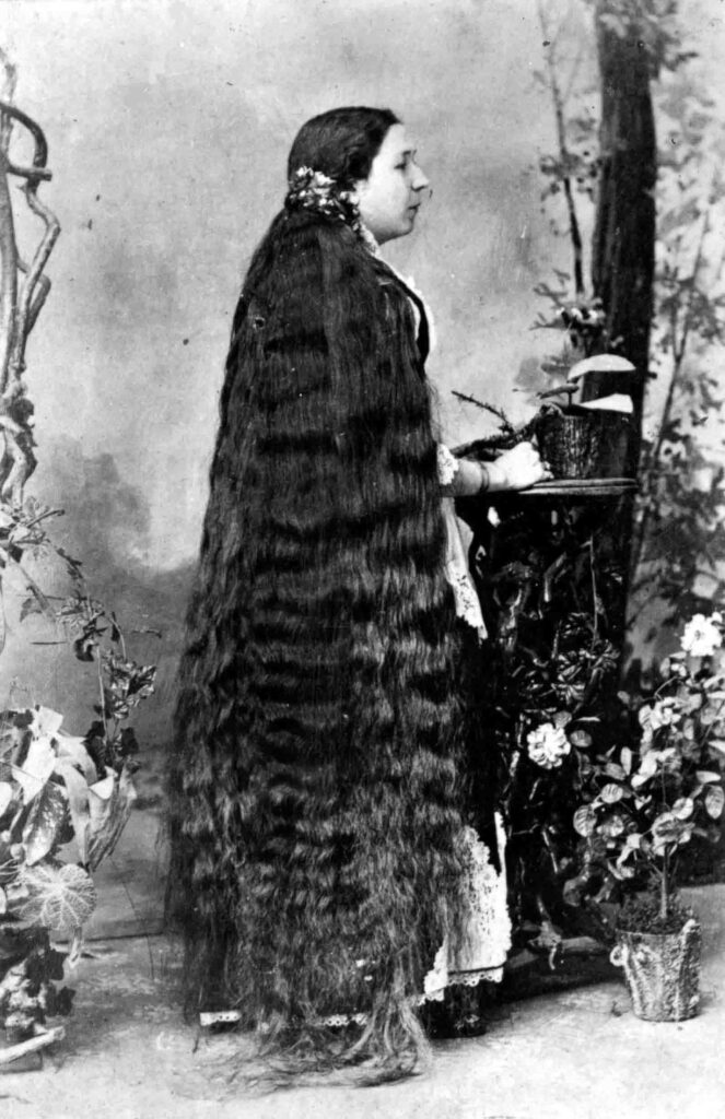 Sólo su marido (o su doncella) podía verla de esa manera, aunque la noción romántica de trenzas sueltas que implicaban feminidad estaba representada en pinturas y publicidad: mujeres hermosas con cabello increíblemente abundante.
