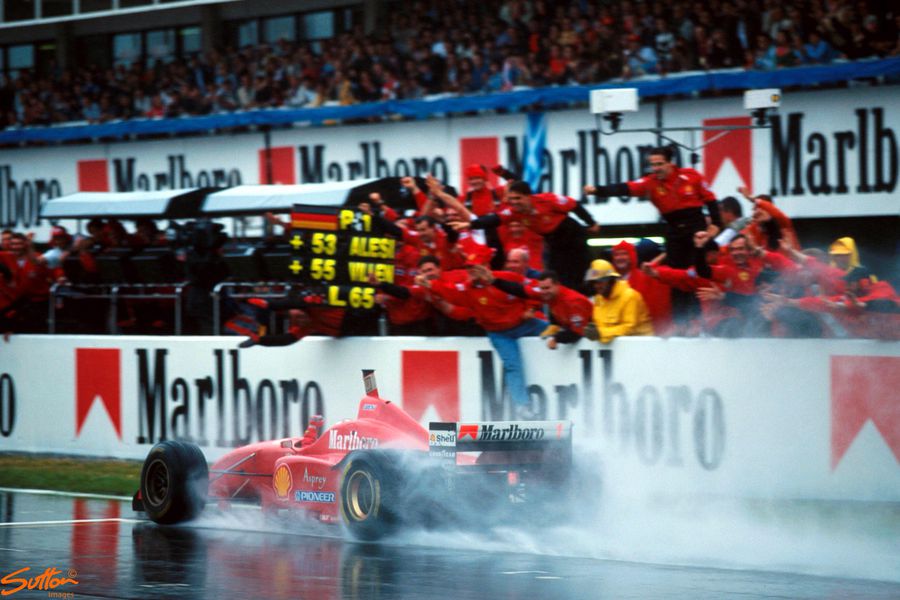 Así fue la primera victoria de Schumacher con Ferrari, de las 72 que conseguiría con los italianos, en un año que terminó viendo campeón a Hill y tercero al germano.