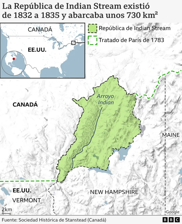 No obstante, hace casi dos siglos, las diferencias sobre cómo interpretar los límites dio pie al nacimiento de un tercer país, hoy casi olvidado: la República de Indian Stream.