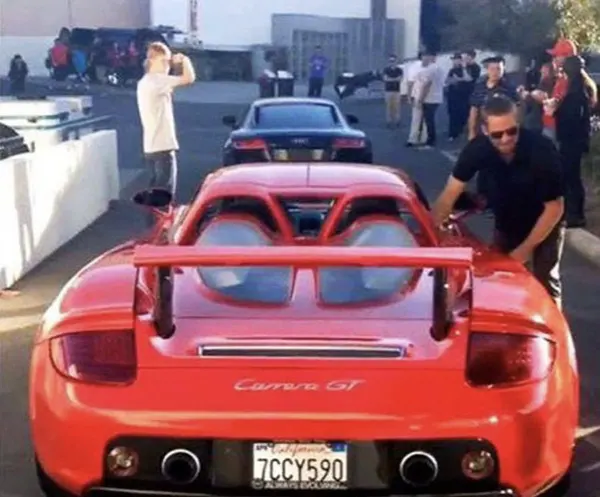 Paul Walker fue fotografiado subiéndose a un Porsche Carrera GT rojo afuera de un evento benéfico en Valencia, California, el 30 de noviembre de 2013.