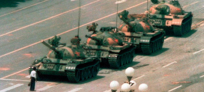 La fotografía del hombre desconocido enfrentándose a una columna de tanques en la Plaza de Tiananmén, en Beijing, durante las protestas pro democracia en China.