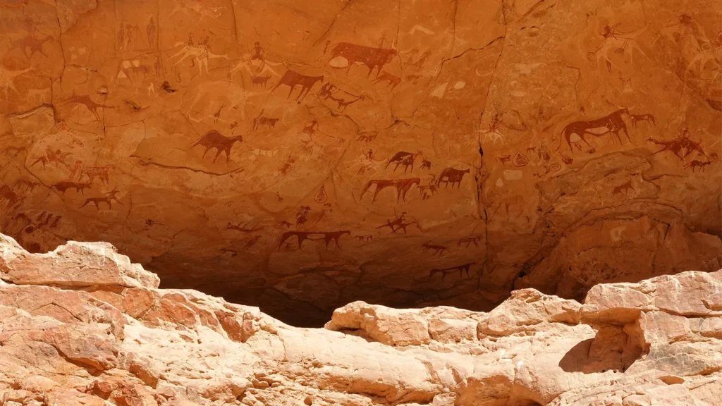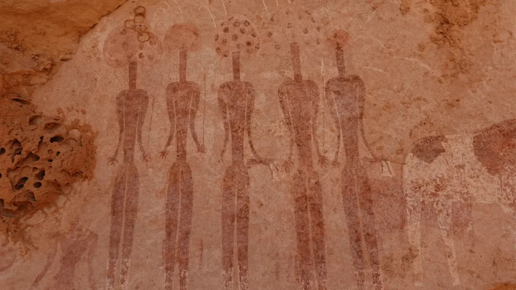 Para aquellos que hacen el viaje, Ennedi tiene una de las mayores concentraciones de arte rupestre prehistórico del mundo. Las pinturas adornan las paredes de casi todas las cuevas en las que entras. Aunque no son tan antiguos como los de Lascaux de Francia o la pintura de cerdos de Indonesia de 45.500 años de antigüedad , muchos datan del sexto milenio a. C. y revelan la historia cambiante del desierto caliente más grande del mundo .