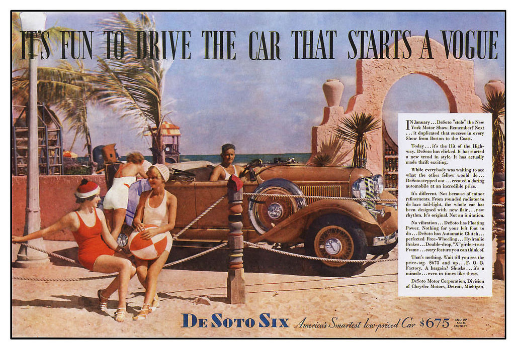 Las agencias de publicidad utilizaron la creatividad para la comercialización de sus productos. Incluso en los años 30, cuando hubo la Depresión en Estados Unidos, los anuncios de automóviles simplificados se redujeron debido a la oscuridad de la época.