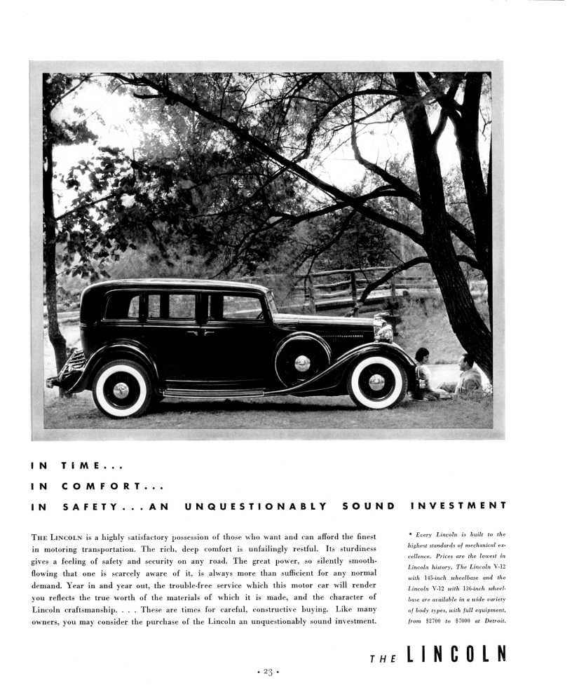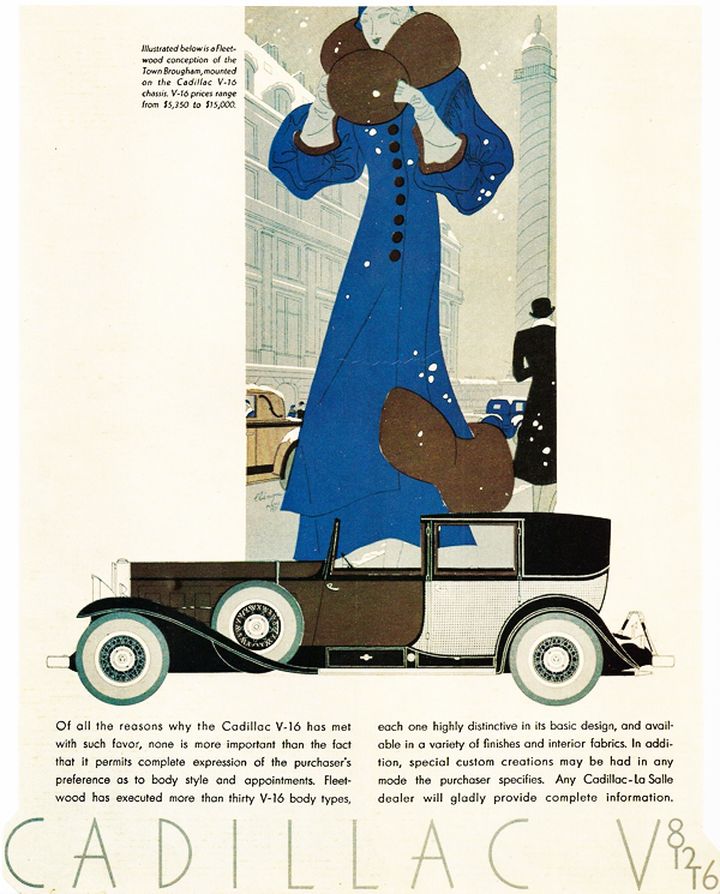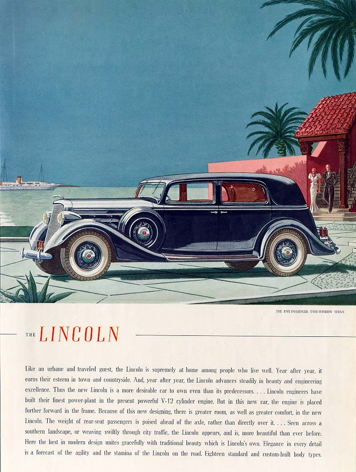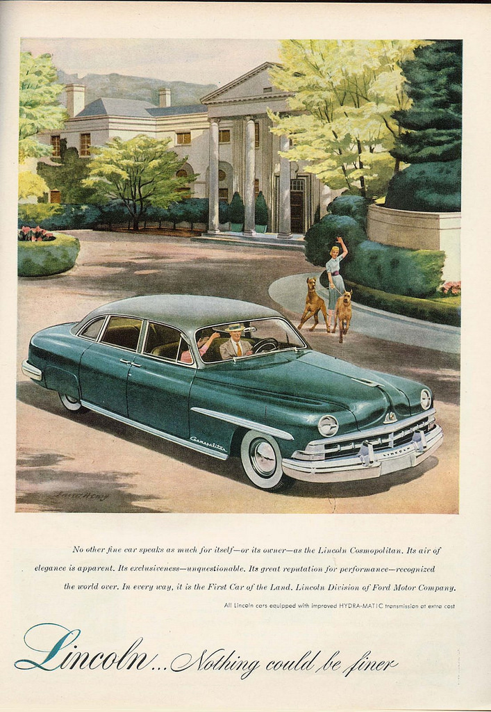 Tan pronto como comenzó el siglo XX, los anuncios se convirtieron en bellas y más brillantes ilustraciones Art Deco, Ford, que estaba a favor de la simplicidad, no podía mantenerlo simple. El automóvil antiguo del hermoso Ford Lincoln mostró los colores simples vibrantes pero usados ​​​​en un vehículo elegante.